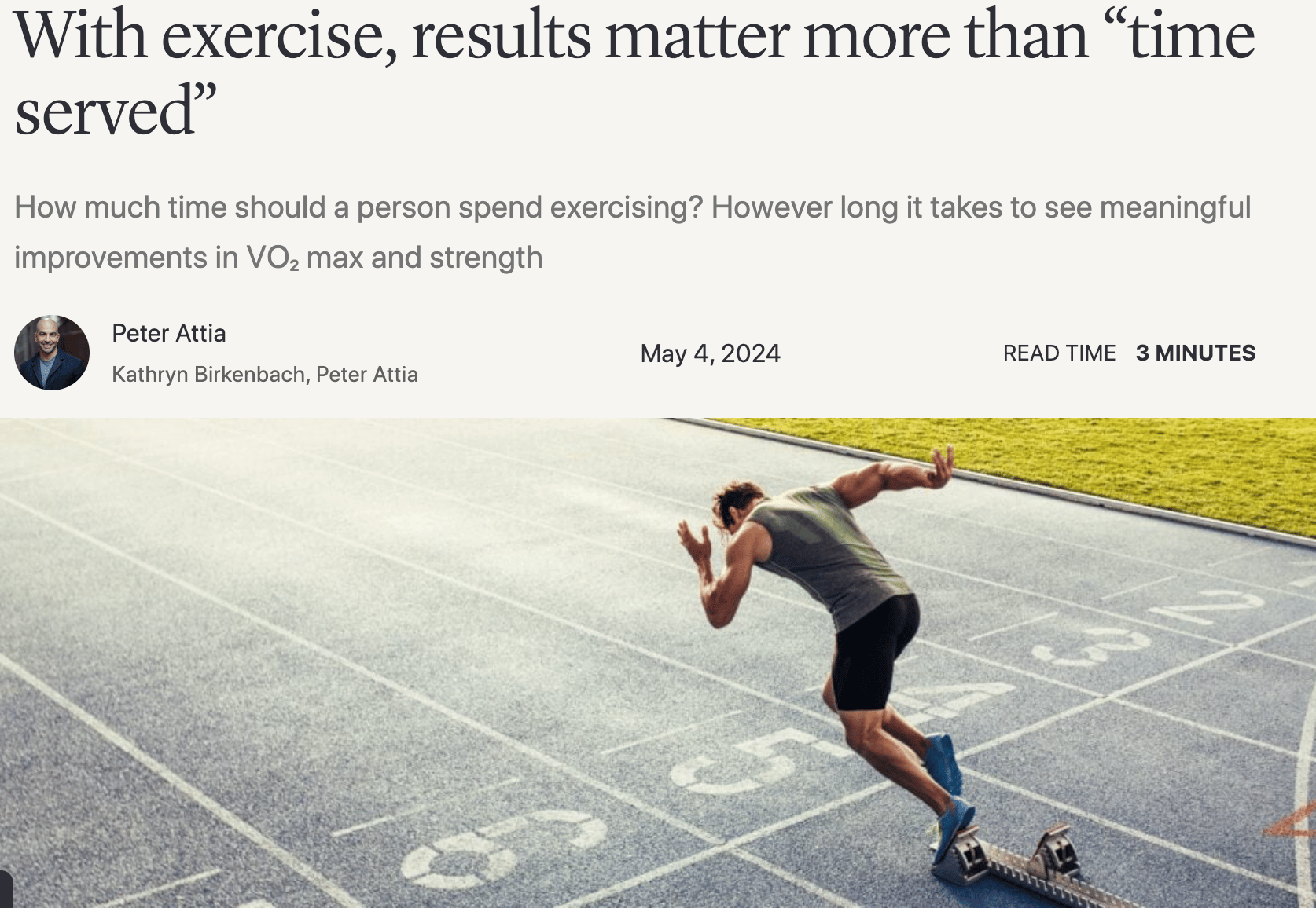 Attia urges us to ditch tracking time in the gym and measure what matters: VO₂ max and strength. If your focus is healthspan, progress on the output side, not total minutes, is the metric that actually delivers results.